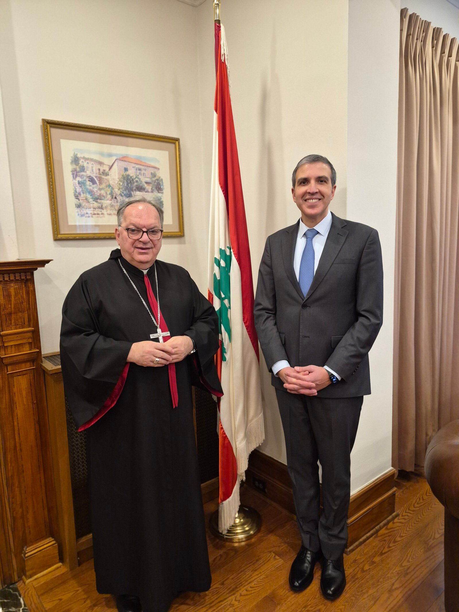 دخل اندريه قصاص والأب طوني زيادة مُسَلِميْن على السفير ودخلنا معاً الى صالون السفارة بانتظار المطران والراهباتين.