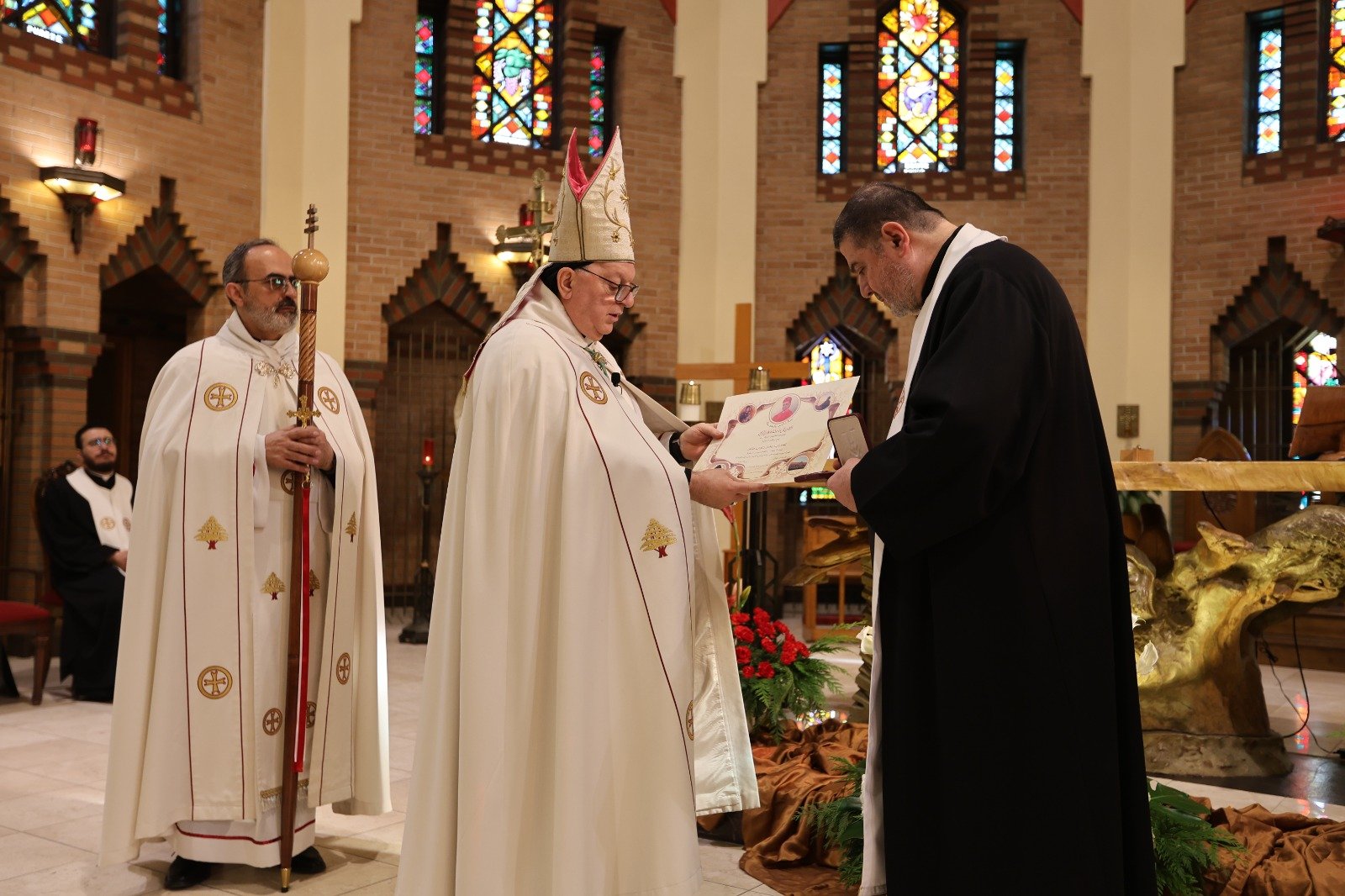 وفي نهاية الحفل قدمّ المطران تابت إلى السفير طوق مجموعة من الكتب عن تاريخ لبنان والموارنة.